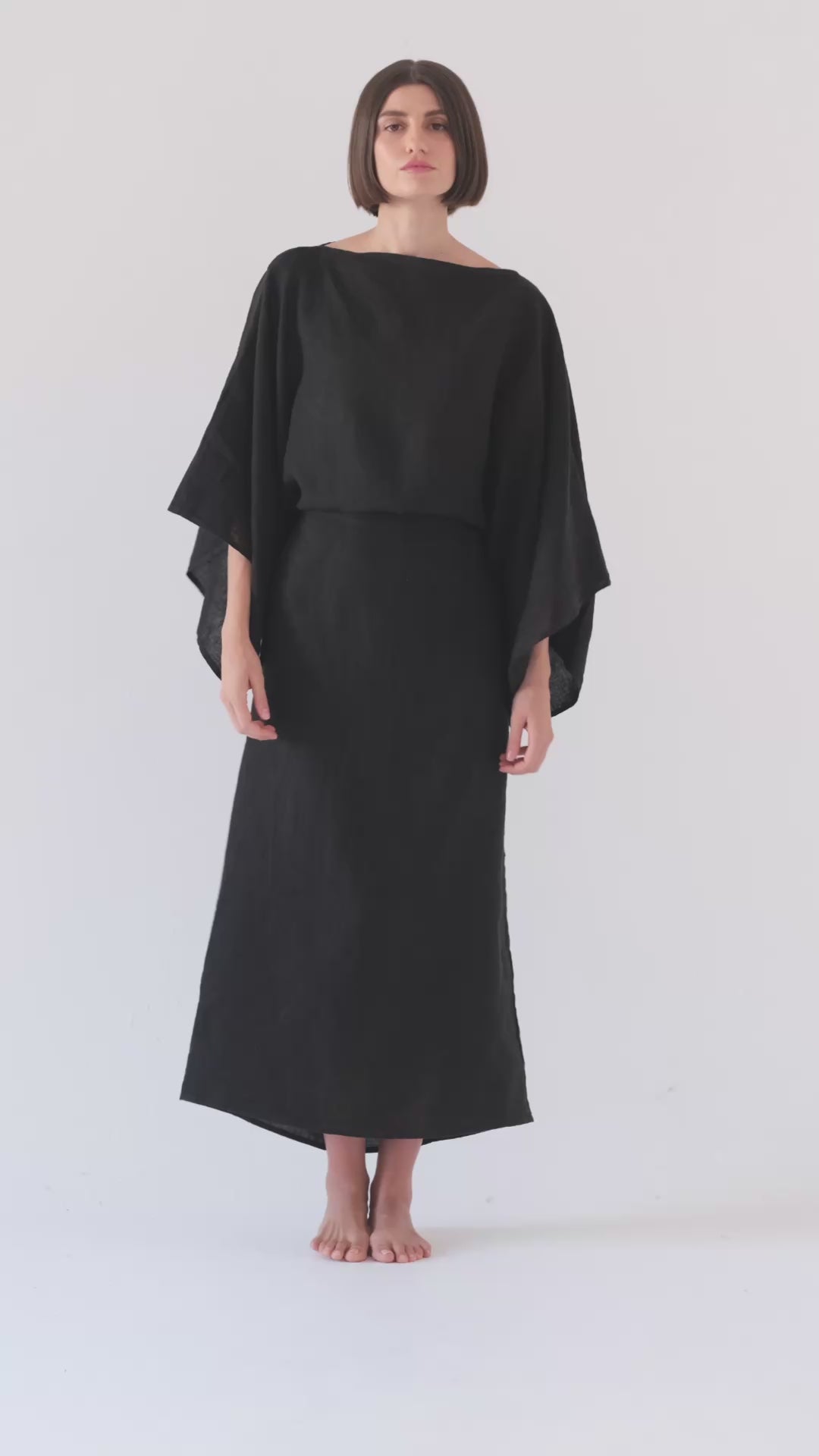 The Kimonos Dress is defined by its dramatic sleeves and adjustable self-tie, allowing you to tailor the fit and styling to your own silhouette. Its extremely versatile design flatters a wide range of body shapes, draping fluidly while cinching gracefully where you choose. Crafted from 100% linen, then garment dyed and stone washed, the fabric reveals subtly faded tones and an exceptionally soft hand, lending the piece a lived-in character with refined ease. Effortless yet striking, this dress balances comfort, versatility, and modern sophistication.